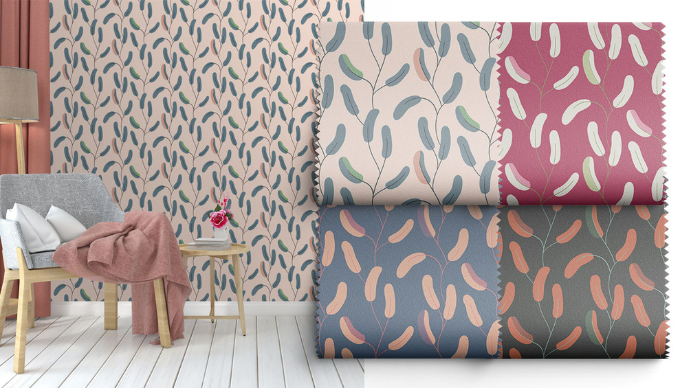 Hand-drawn foliage pattern made in vector format, scalable without losing image quality, easy to recolor, and moving the motifs around.