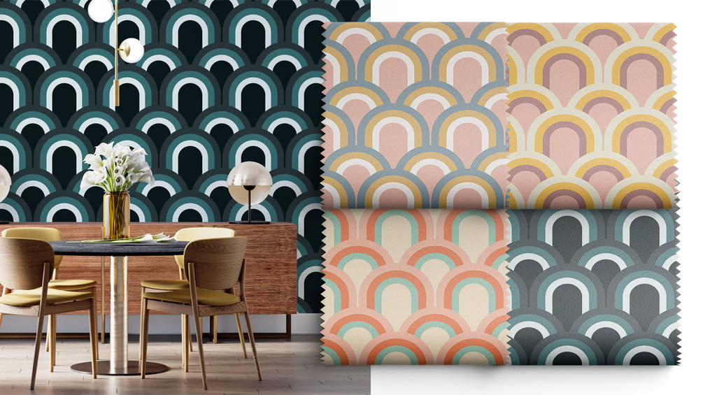 Hand-drawn rainbow waves pattern made in vector format, scalable without losing image quality, easy to recolor, and moving the motifs around.